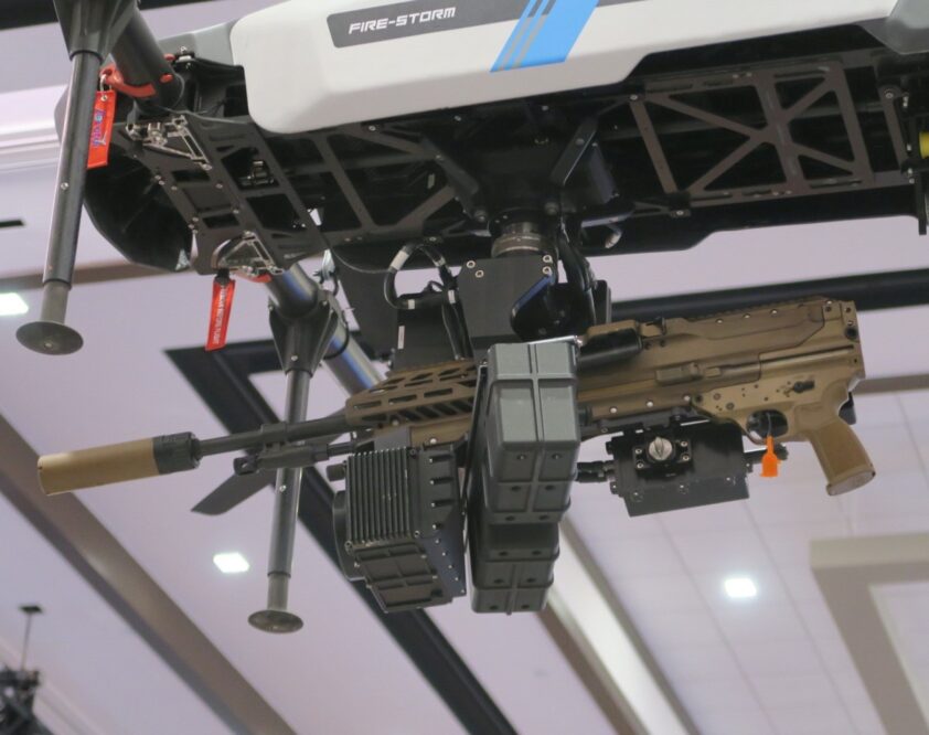 Drones equipados con armamento automático: desde el cuadricóptero Firestorm con ametralladora SIG M250 hasta el dron con lanzagranadas Colt Mk47.